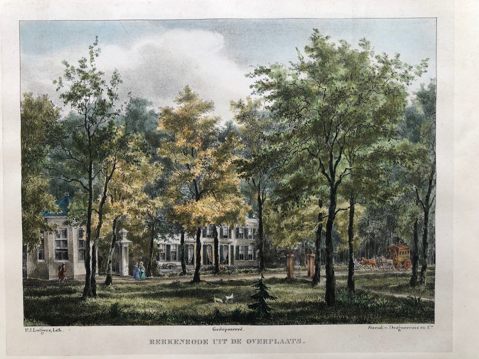 Berkenrode uit de overplaats is een fraaie, met de hand ingekleurde lithografie van P.J. Lutgers, gedrukt door Desguerrois & Co. tussen 1837 en 1844. Het toont het elegante landgoed Berkenrode in Heemstede bij Haarlem, een van de historische buitenplaatsen die ooit langs de Herenweg lagen. De compositie toont het landgoed in een rustige landelijke omgeving, die het verfijnde Nederlandse plattelandsleven van de 19e eeuw weerspiegelt.