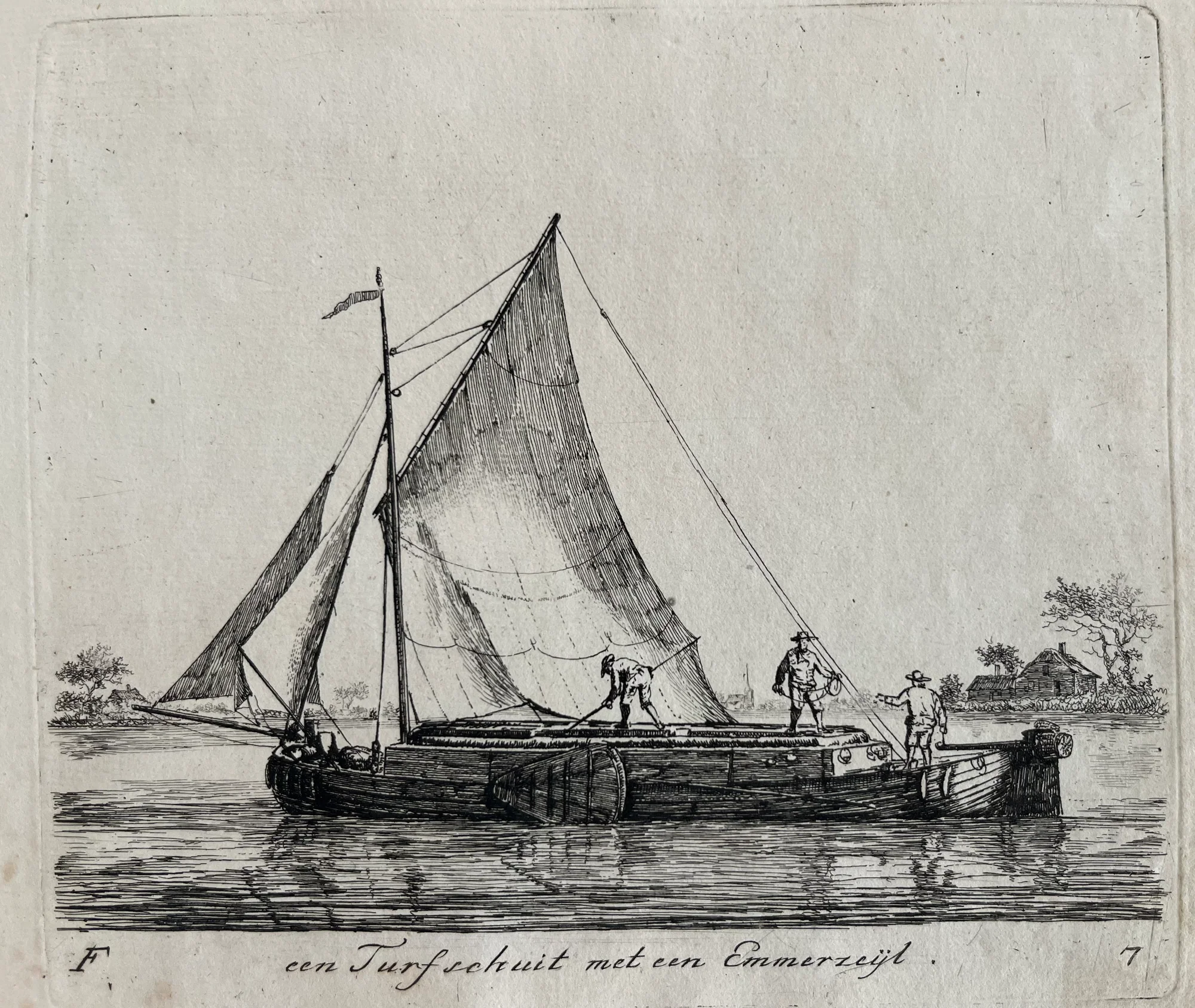Deze Groenewegen ets, getiteld ‘Een Turfschuit met een Emmerzeijl’, is Plaat 7 van de 6e serie van ‘Verscheyde Soorten van Hollandse Vaartuigen’ (1789–1801). Het toont een traditionele turfschuit met een Emmerzeijl-zeil. De nauwkeurige techniek en kennis van Gerrit Groenewegen van Nederlandse scheepstypen komen duidelijk naar voren in dit gedetailleerde werk.