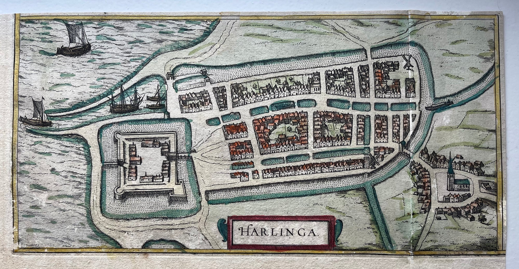 map, old map, antique map, plan, townplan, dutch, nederland, holland, friesland, harlingen, zuiderzee, oude kaart, antieke kaart, kaart friesland, braun, hogenberg