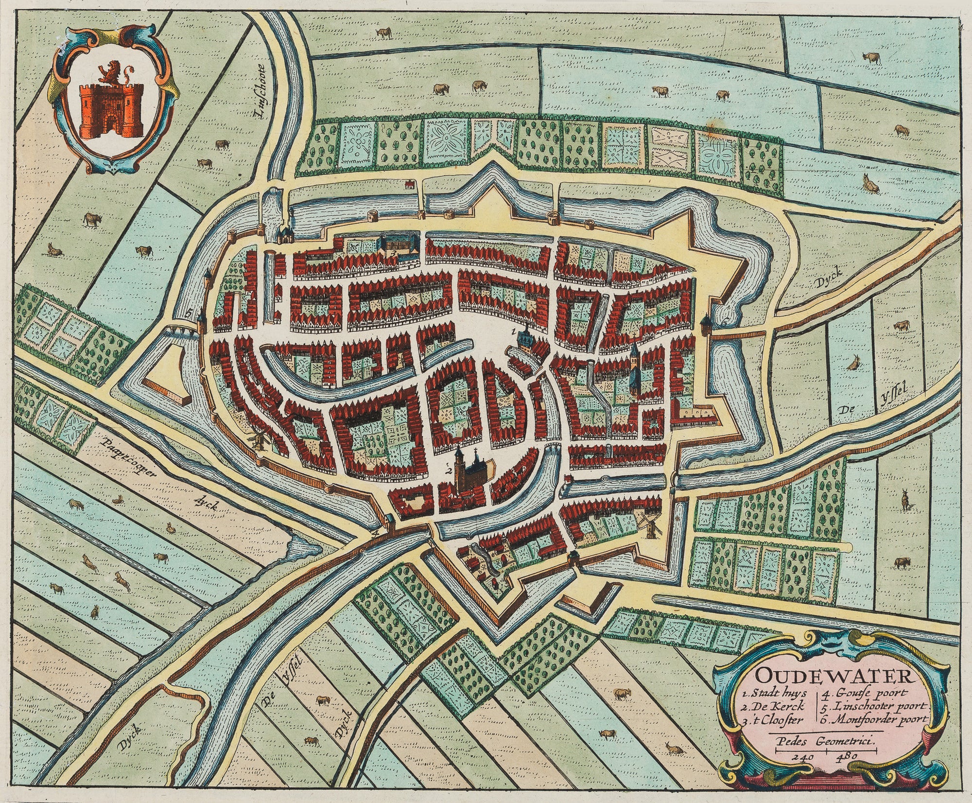 Oudewater, Utrecht, Blaeu, engraving, old map, townplan, antique map, antique print, Holland