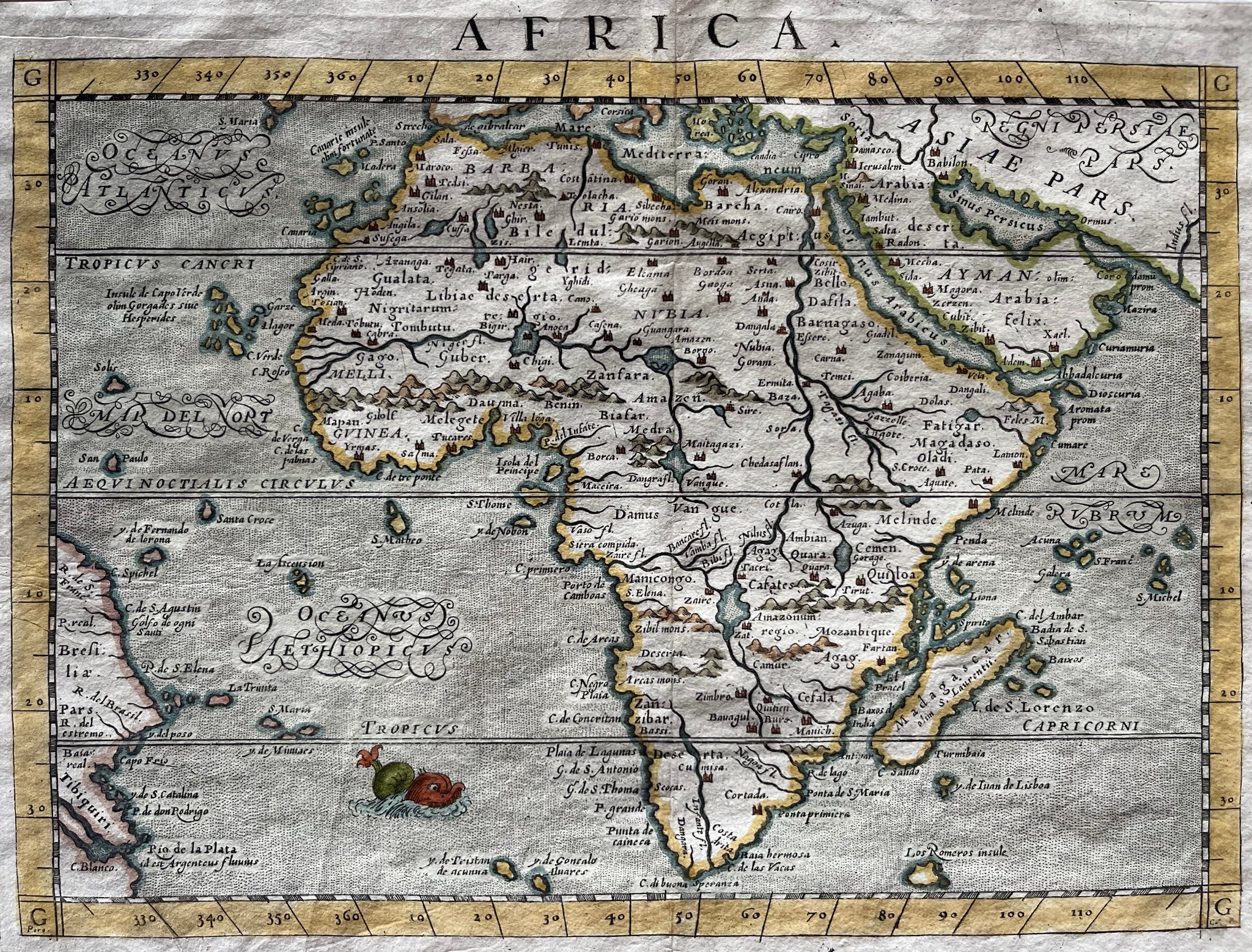 Search for: map, old map, antique map, africa, botero, ortelius, seamonster, cape good hope, guinea, marocco, madagascar, oude kaart, antieke kaar, afrika, arabia,